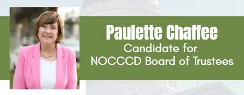 Join us for a Meet the Candidate Reception featuring Paulette Chaffee, Candidate for NOCCCD Board of Trustees. The reception and mixer will include a presentation from Paulette Chaffee, followed by an open Q&A session - offering attendees a valuable opportunity to ask questions, share priorities and hear directly from Paulette Chaffee, candidate for NOCCCD Board of Trustees.Special Introductory Remarks by dignitaries.
